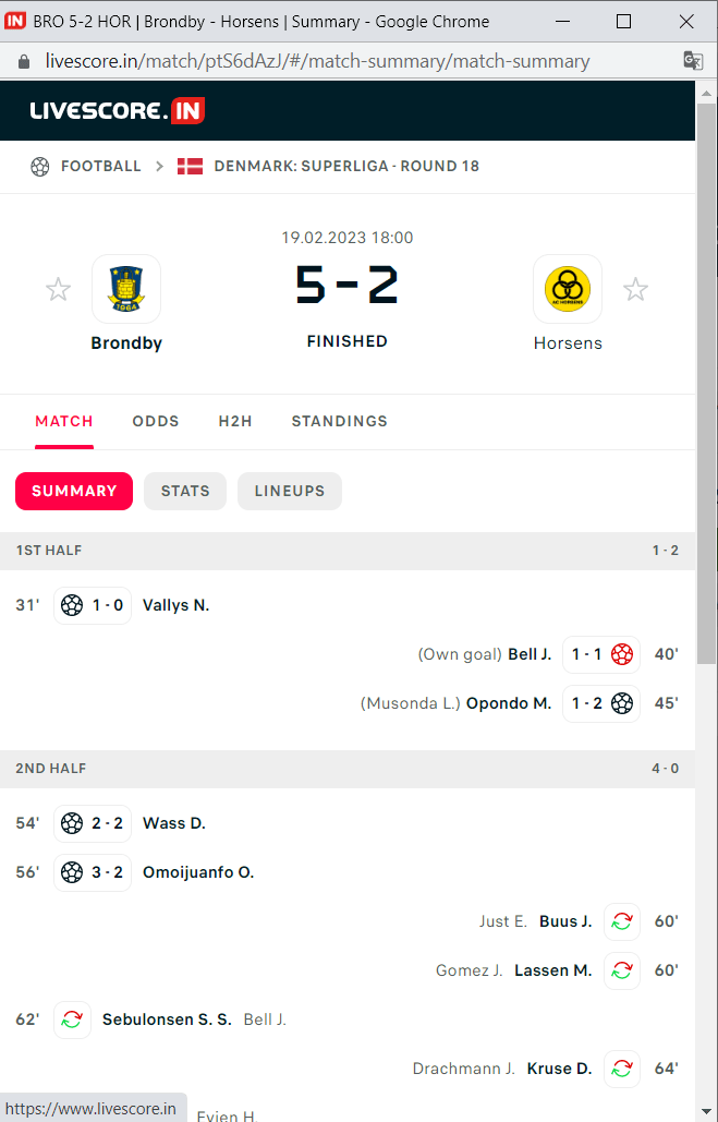 Brondby v Horsens = Pick: 2/1 – Finish: HT 1:2 FT 5:2 Win | Odd: 26.00 from Denmakr
